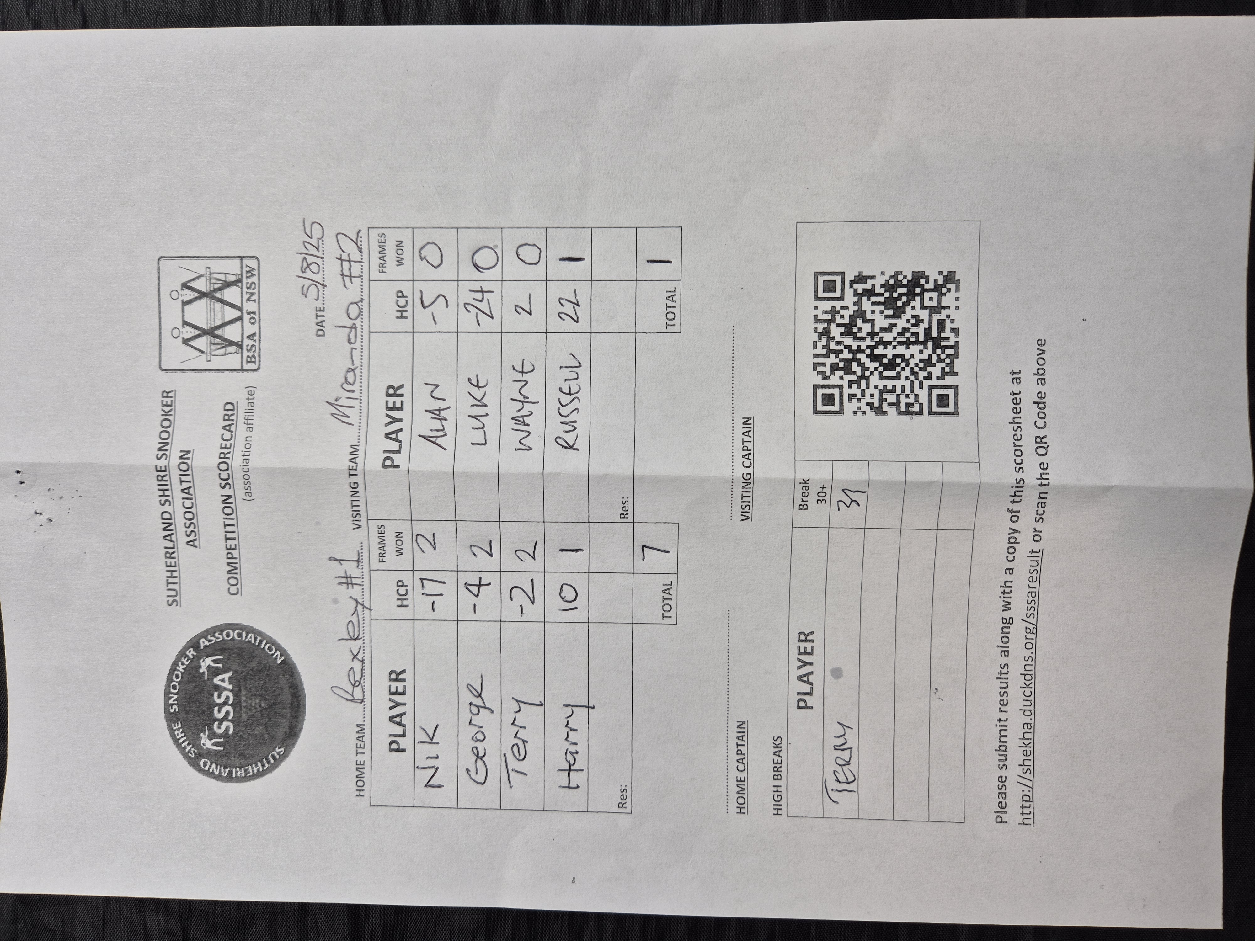 POS | Bexley RSL #1 | Frame Won | Break | Miranda RSL #2 | Frame Won | Break | Result Note | Updated on | Update by |