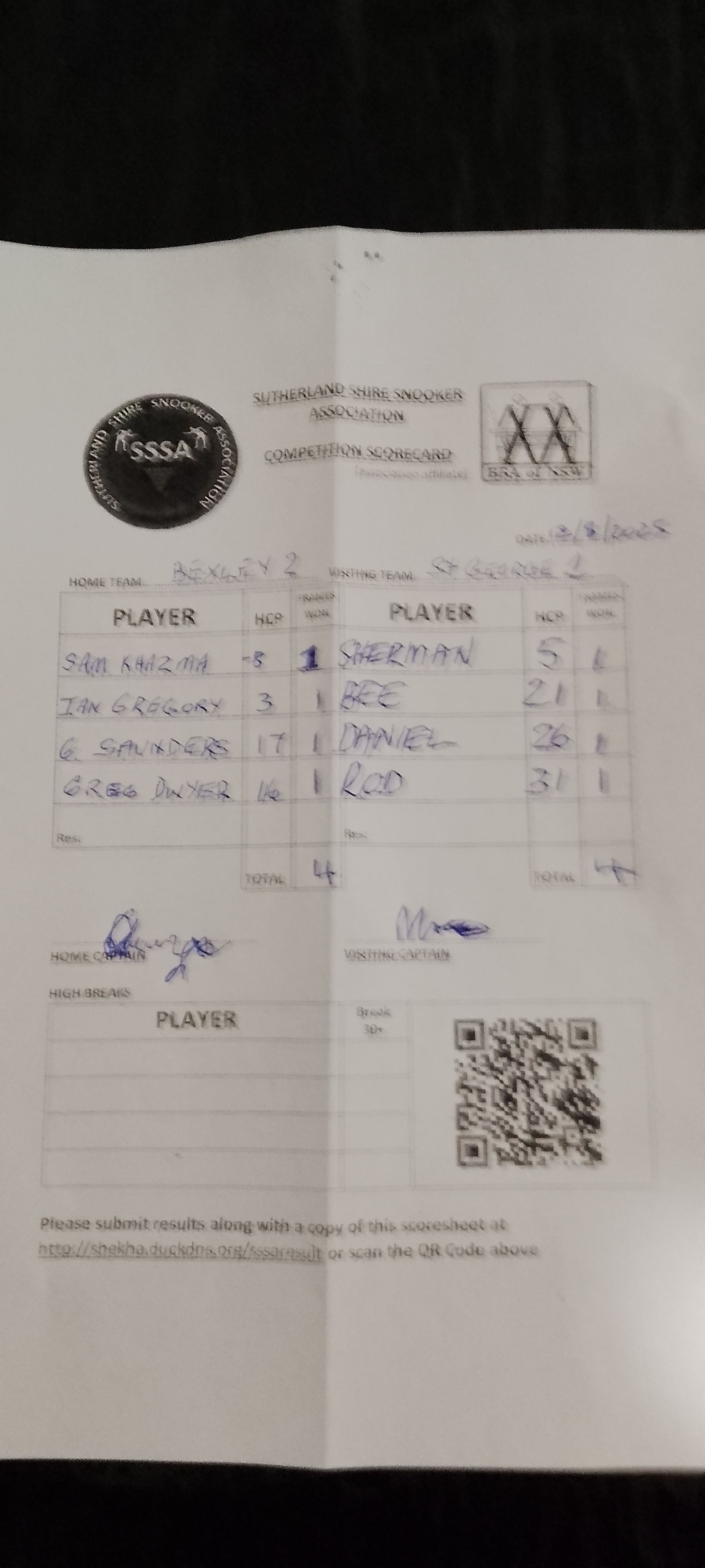 POS | Bexley RSL #2 | Frame Won | Break | St George #1 | Frame Won | Break | Result Note | Updated on | Update by |
