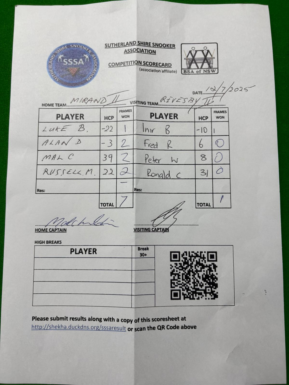 Russel McRae (22) | Ronald Chen (31) | 2025-08-13 06:24:31 | Miranda RSL #2 |