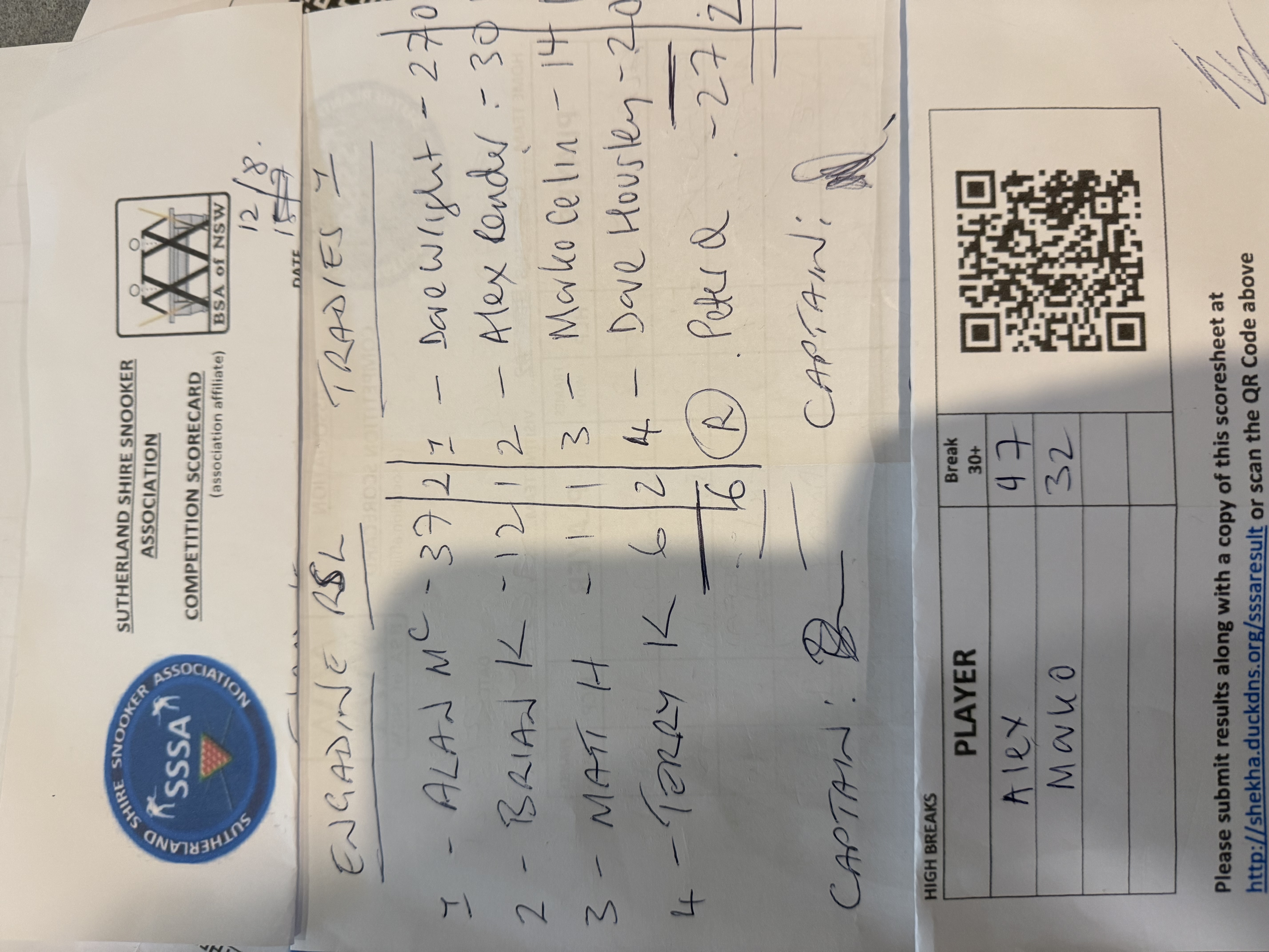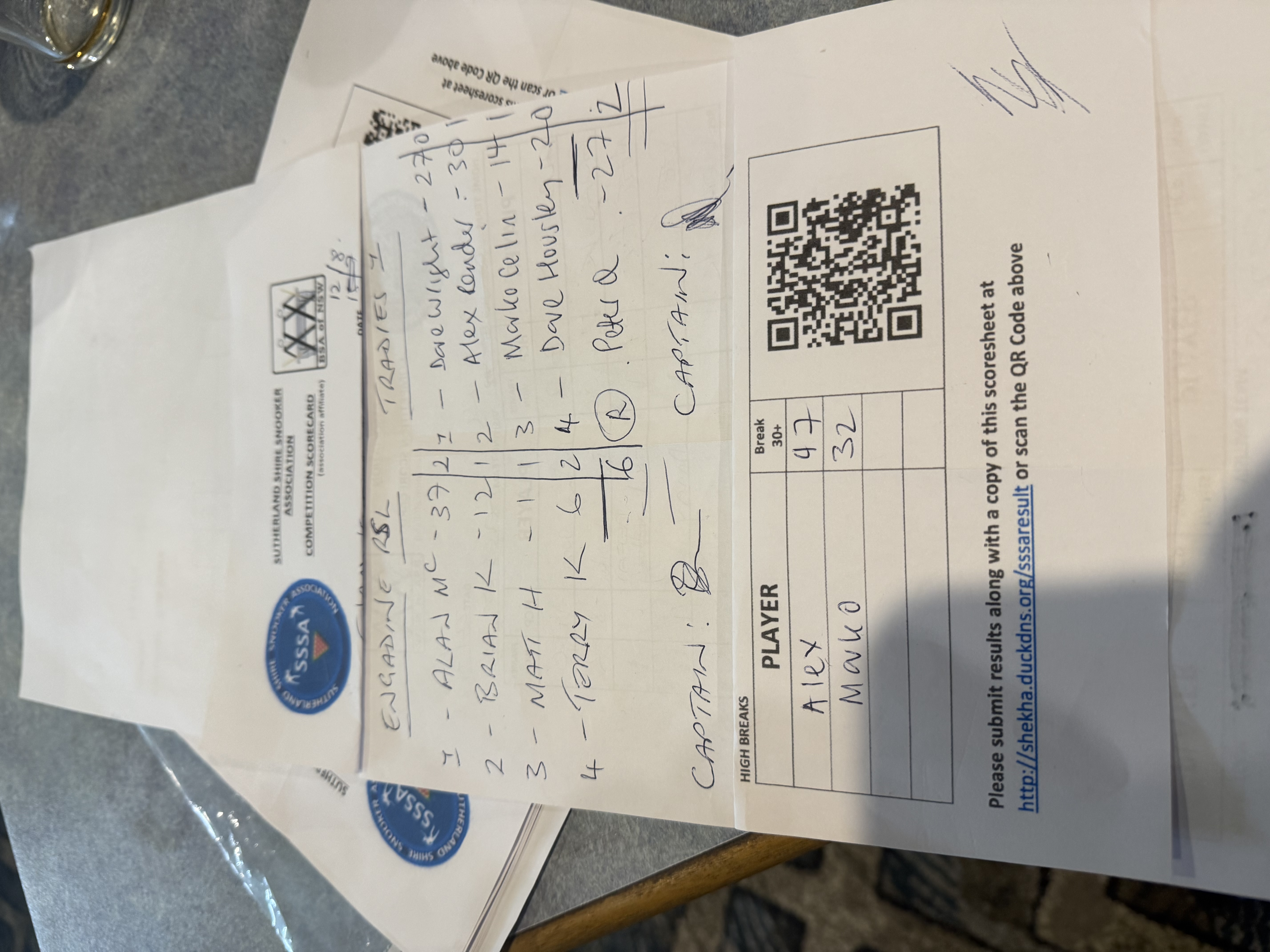 POS | Engadine #1 | Frame Won | Break | Tradies #1 | Frame Won | Break | Result Note | Updated on | Update by |
