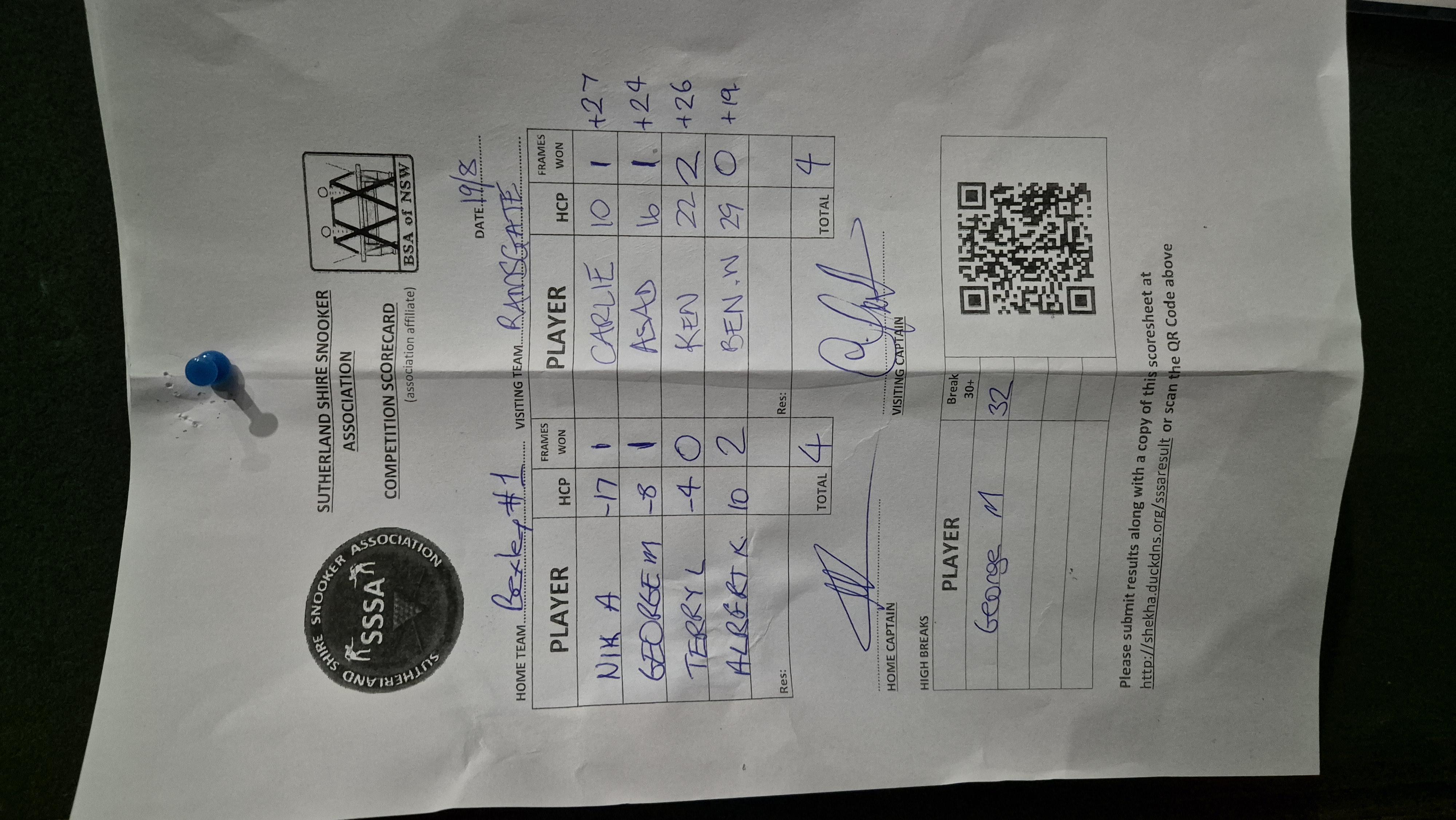 POS | Bexley RSL #1 | Frame Won | Break | Ramsgate RSL #1 | Frame Won | Break | Result Note | Updated on | Update by |