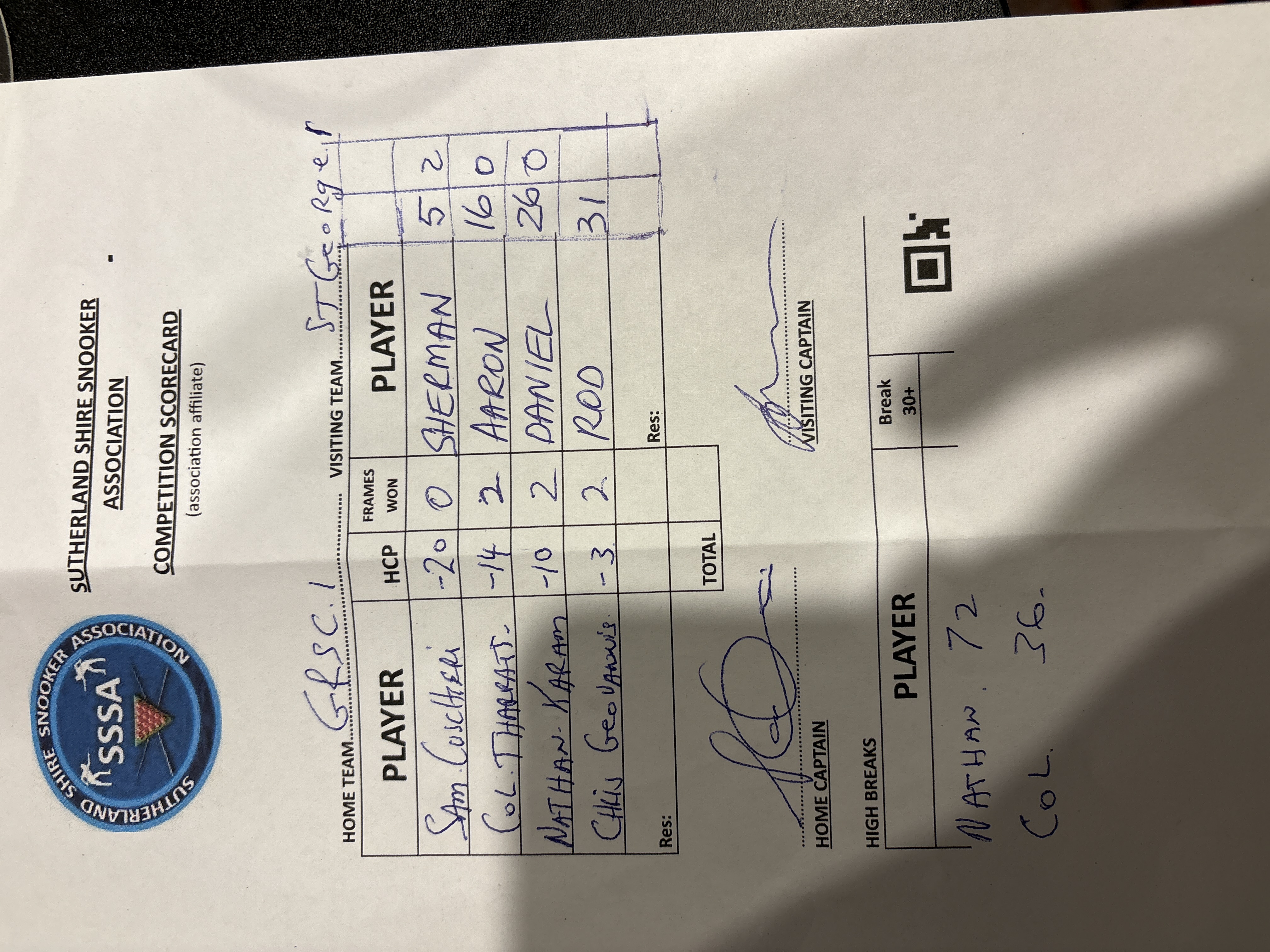 POS | Georges River #1 | Frame Won | Break | St George #1 | Frame Won | Break | Result Note | Updated on | Update by |
