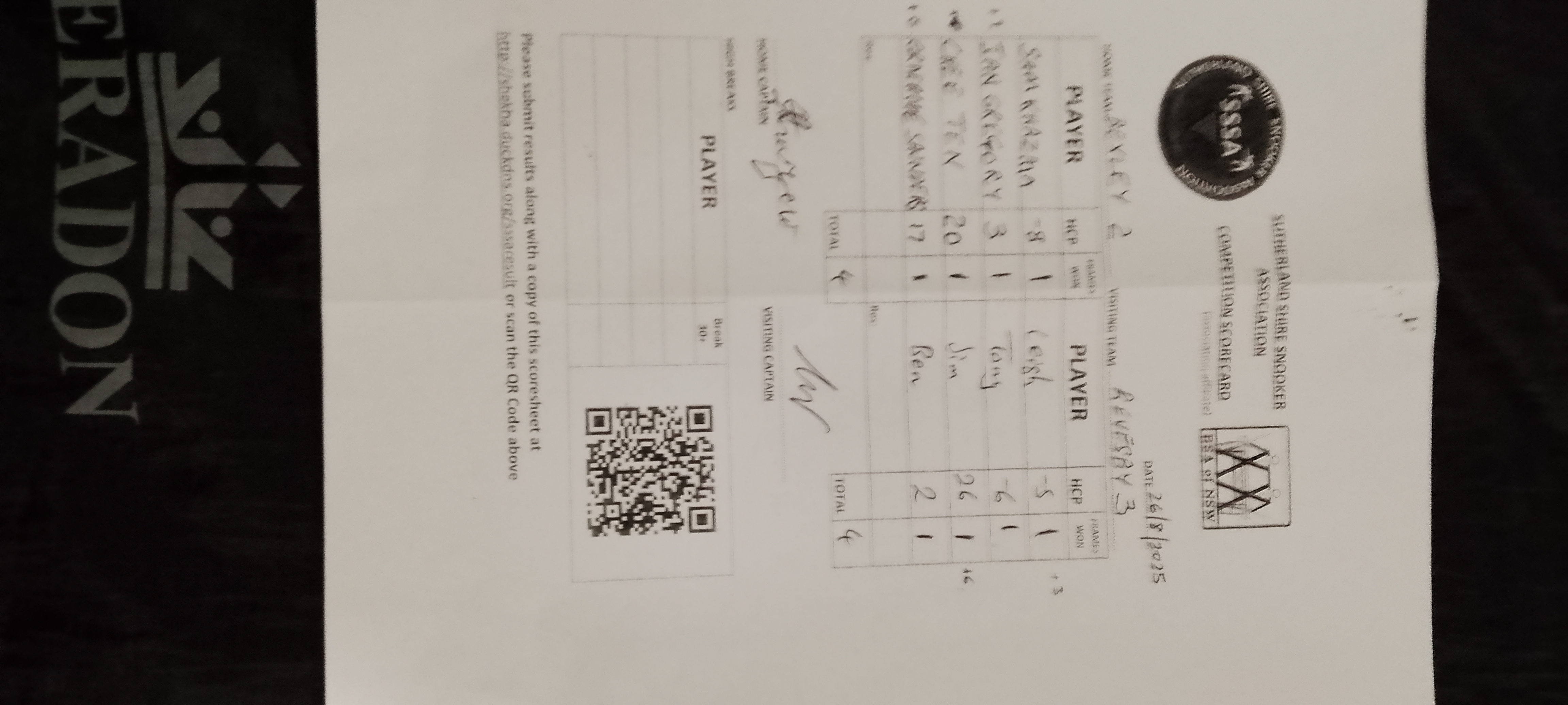Chee Ten (20) | Jim Thompson (26) | 2025-08-26 22:36:17 | Bexley RSL #2 | ||||||