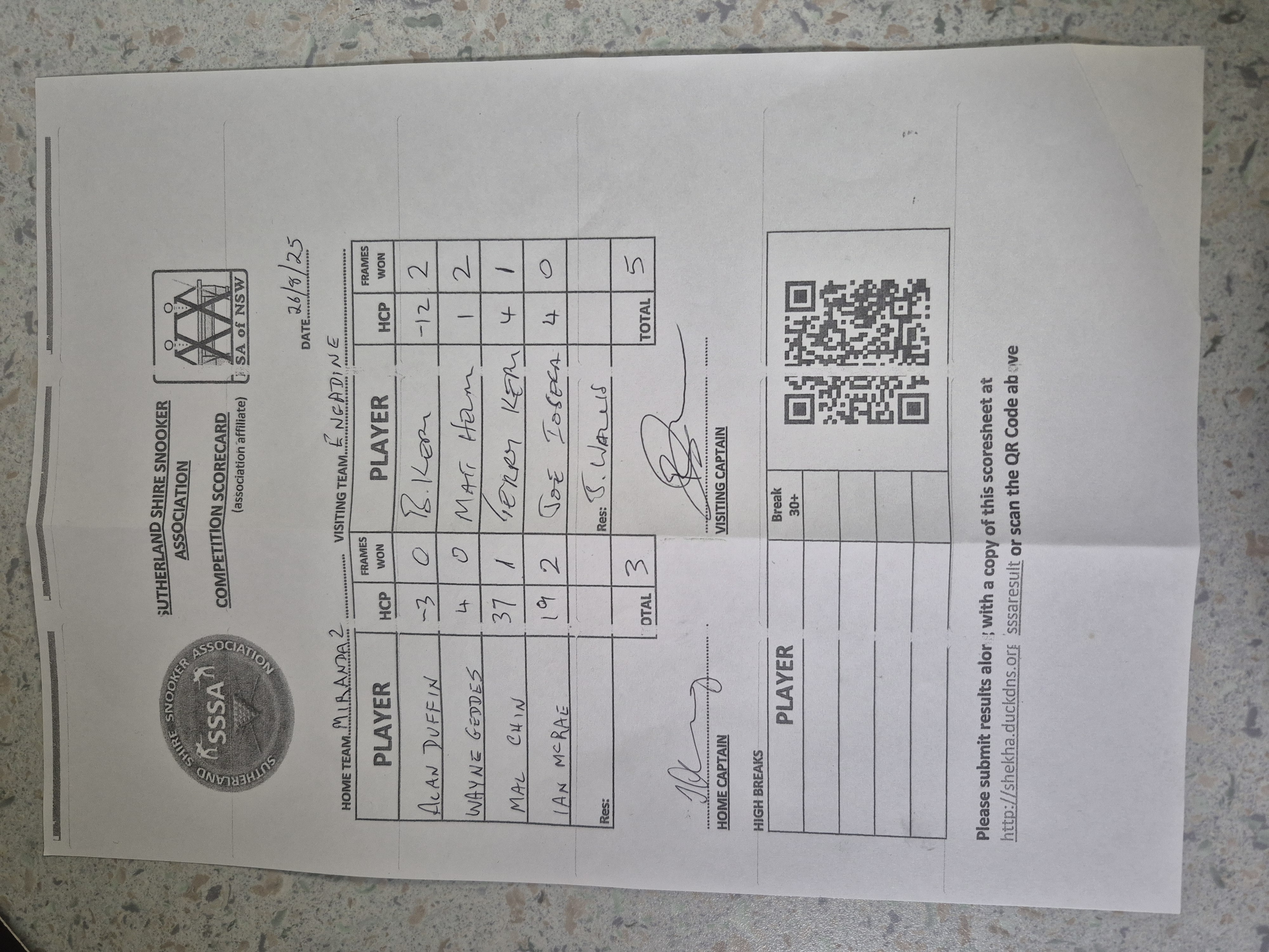 Alan Duffin (-3) | Brian Kepu (-12) | 2025-08-26 23:00:55 | Miranda RSL #2 | ||||||