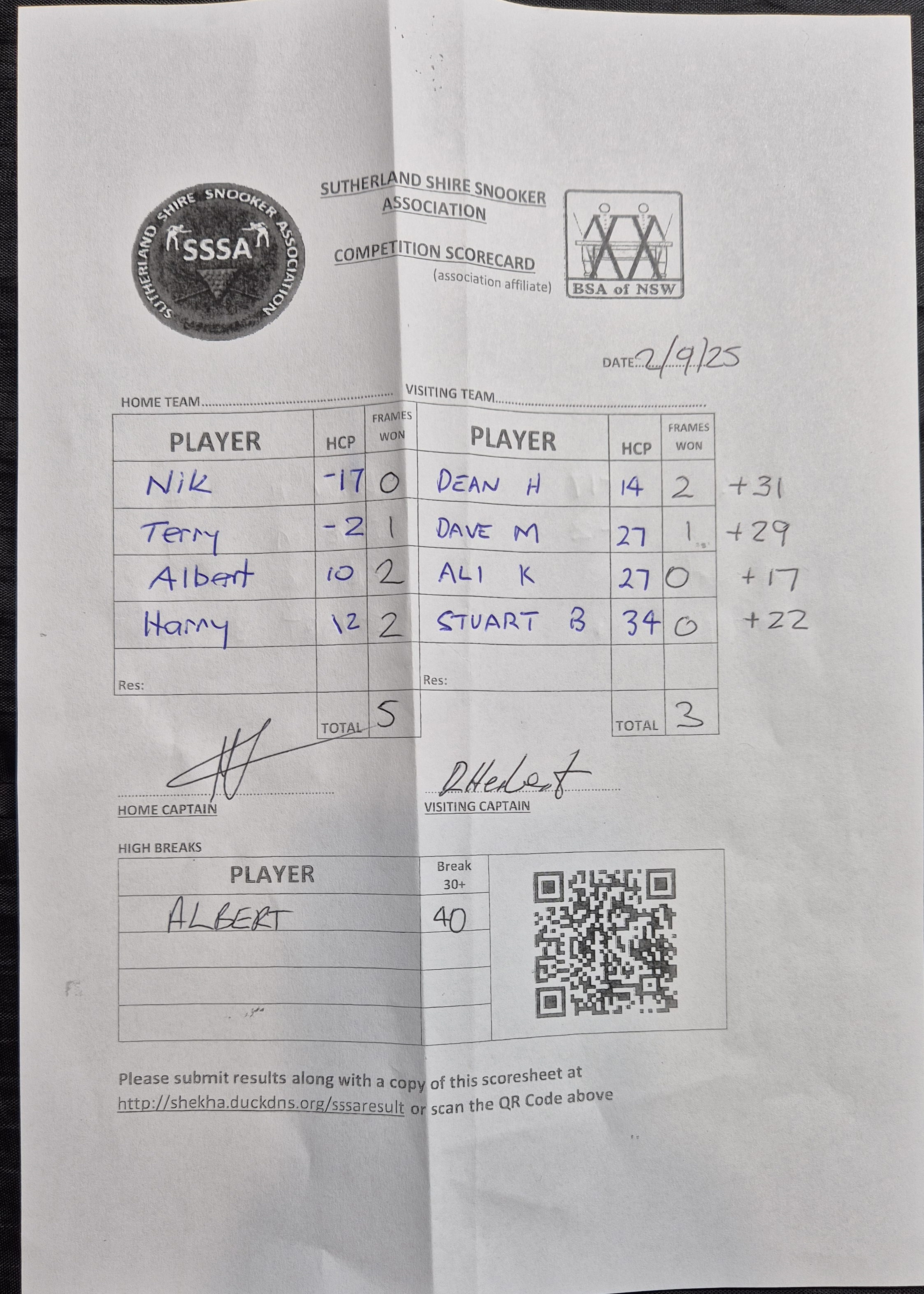 Terry Lai (-2) | Dave Mitchell (27) | 2025-09-02 22:01:17 | Bexley RSL #1 | ||||||