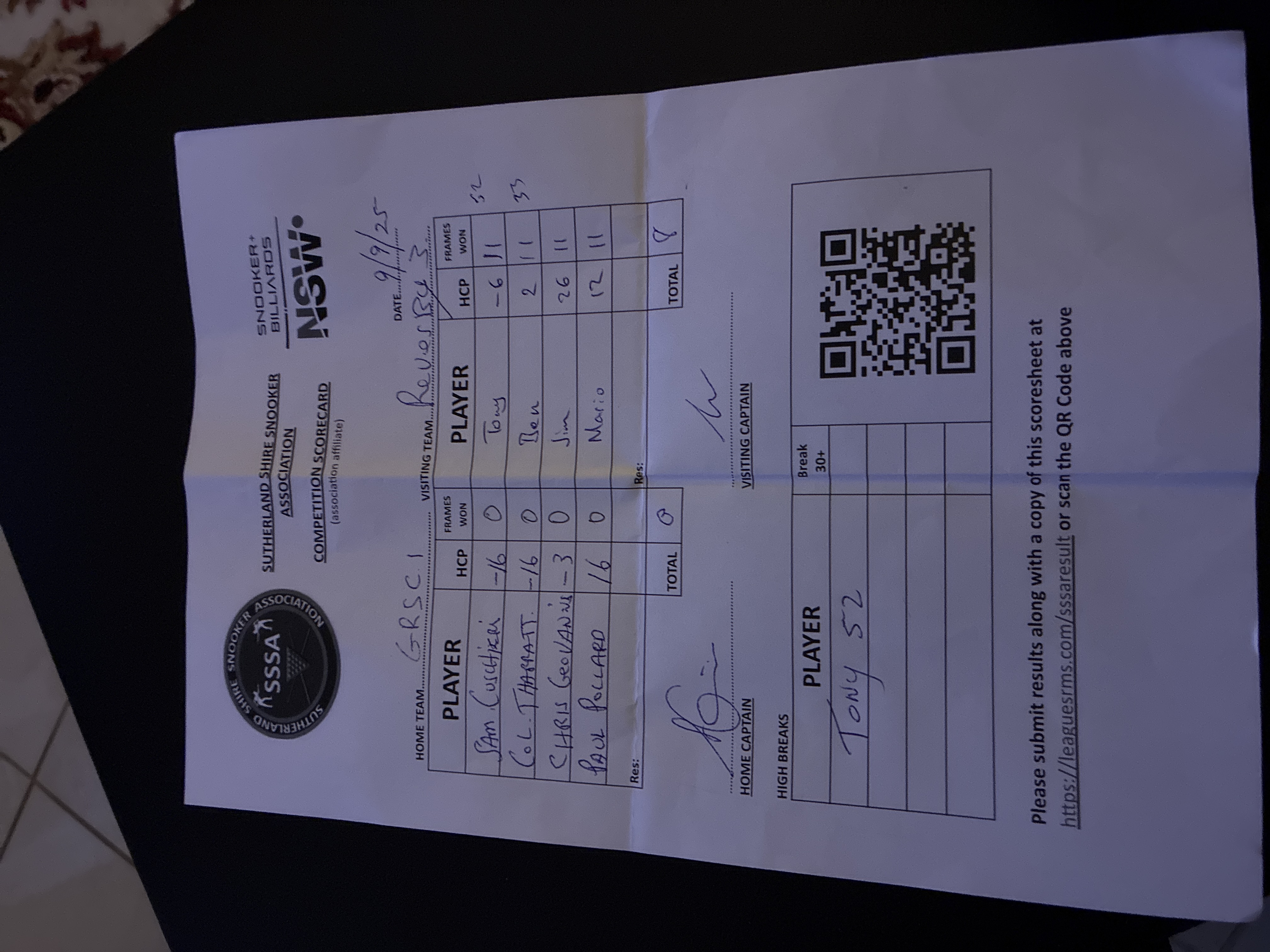 Chris Giovannis (-3) | Jim Thompson (26) | 2025-09-09 22:39:51 | Revesby Workers #3 | ||||||
