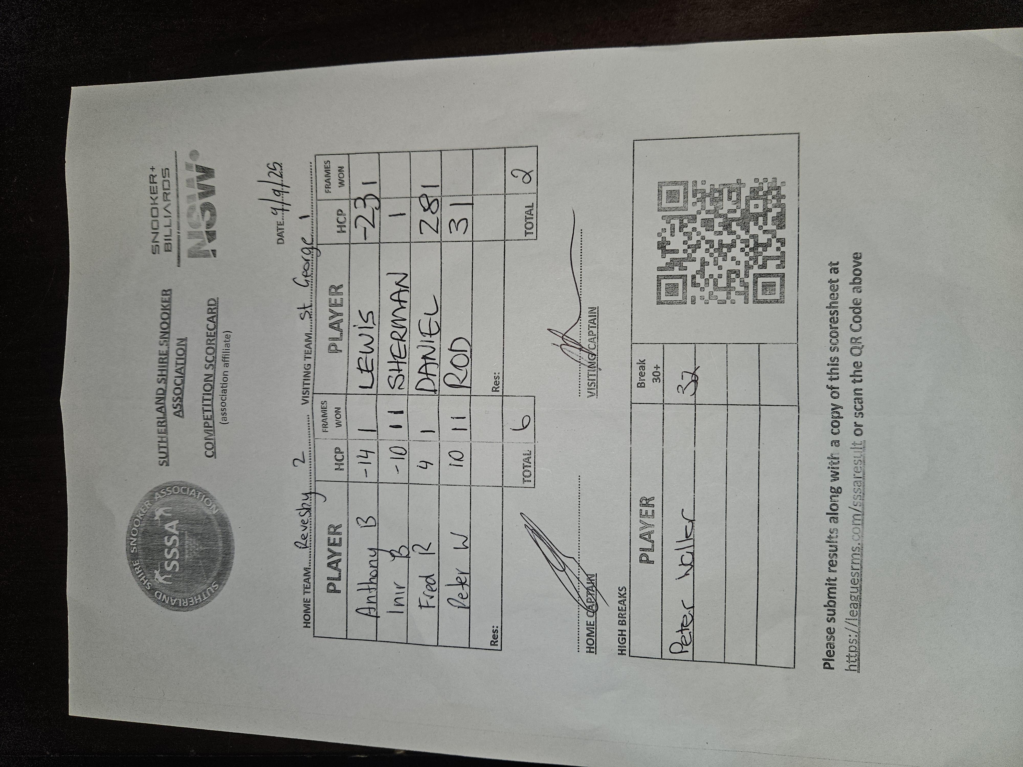 POS | Revesby Workers #2 | Frame Won | Break | St George #1 | Frame Won | Break | Result Note | Updated on | Update by |