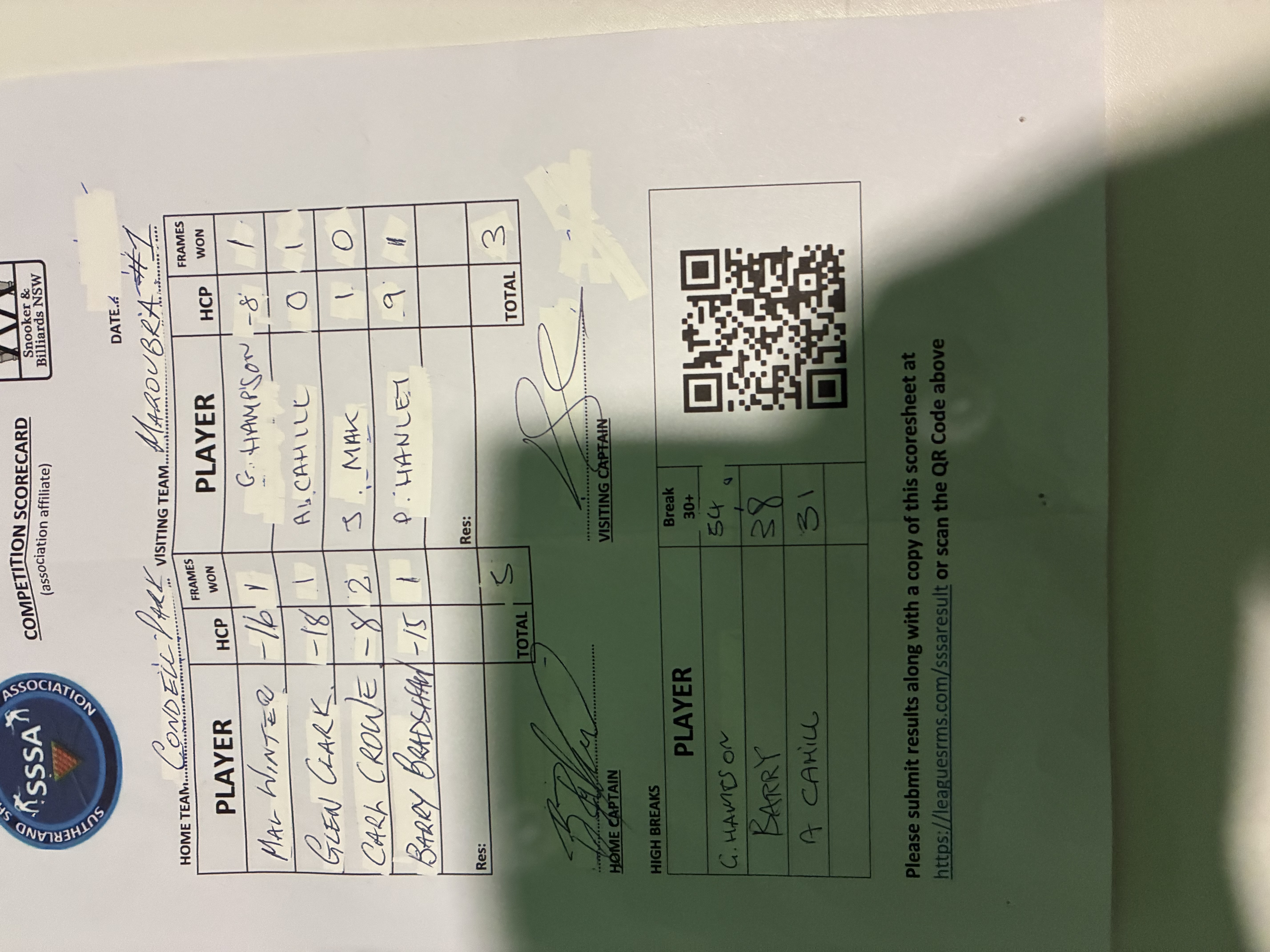 POS | Condell Park #1 | Frame Won | Break | Maroubra Seals #1 | Frame Won | Break | Result Note | Updated on | Update by |