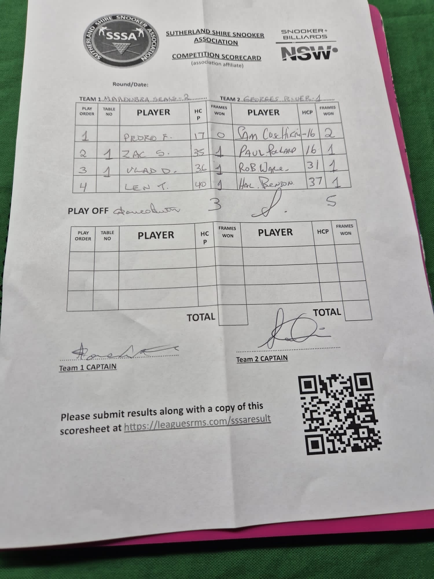 POS | Maroubra Seals #2 | Frame Won | Break | Georges River #1 | Frame Won | Break | Result Note | Updated on | Update by |