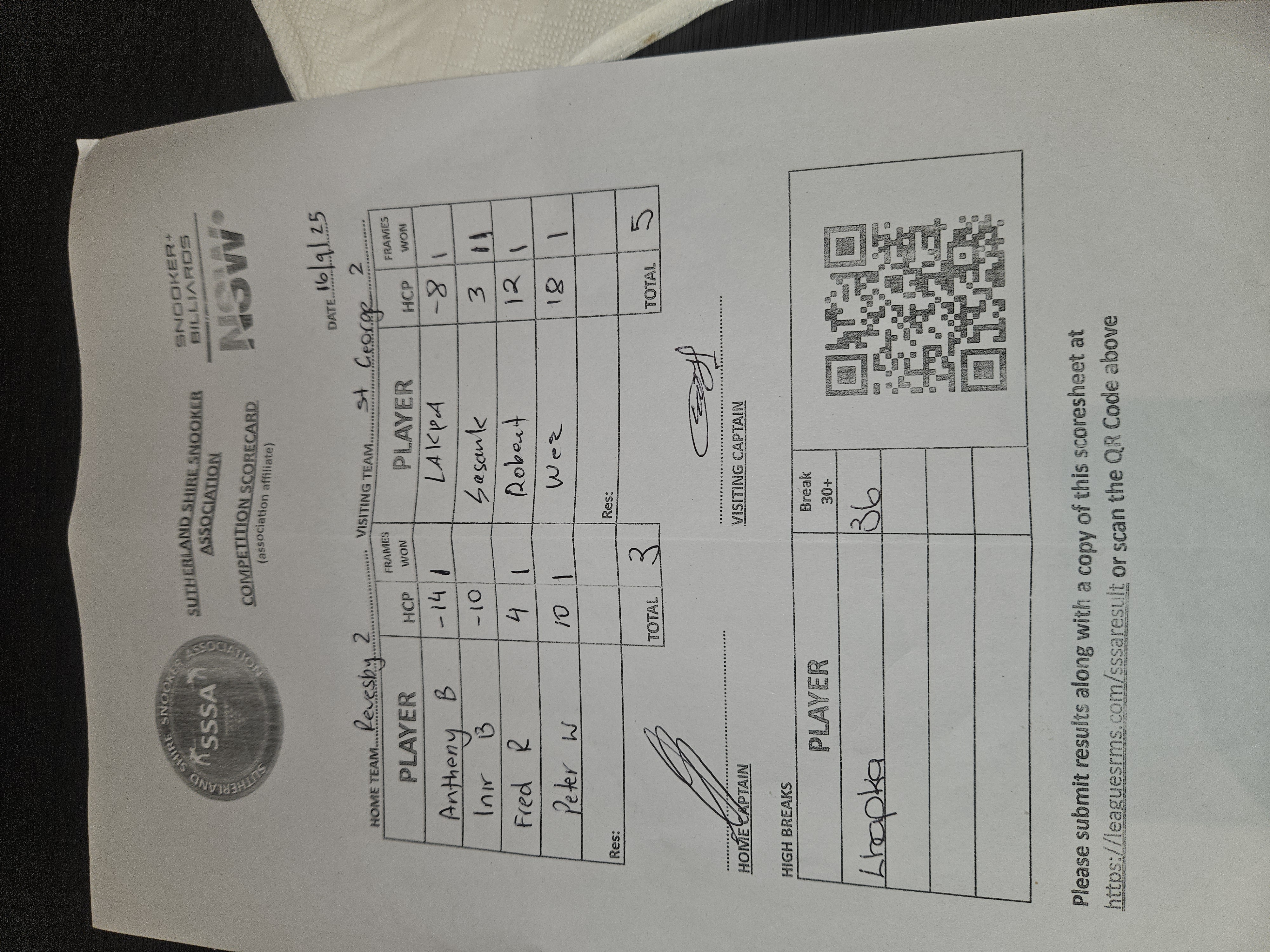 POS | Revesby Workers #2 | Frame Won | Break | St George #2 | Frame Won | Break | Result Note | Updated on | Update by |