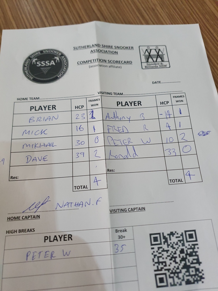 POS | Tradies #2 | Frame Won | Break | Revesby Workers #2 | Frame Won | Break | Result Note | Updated on | Update by |