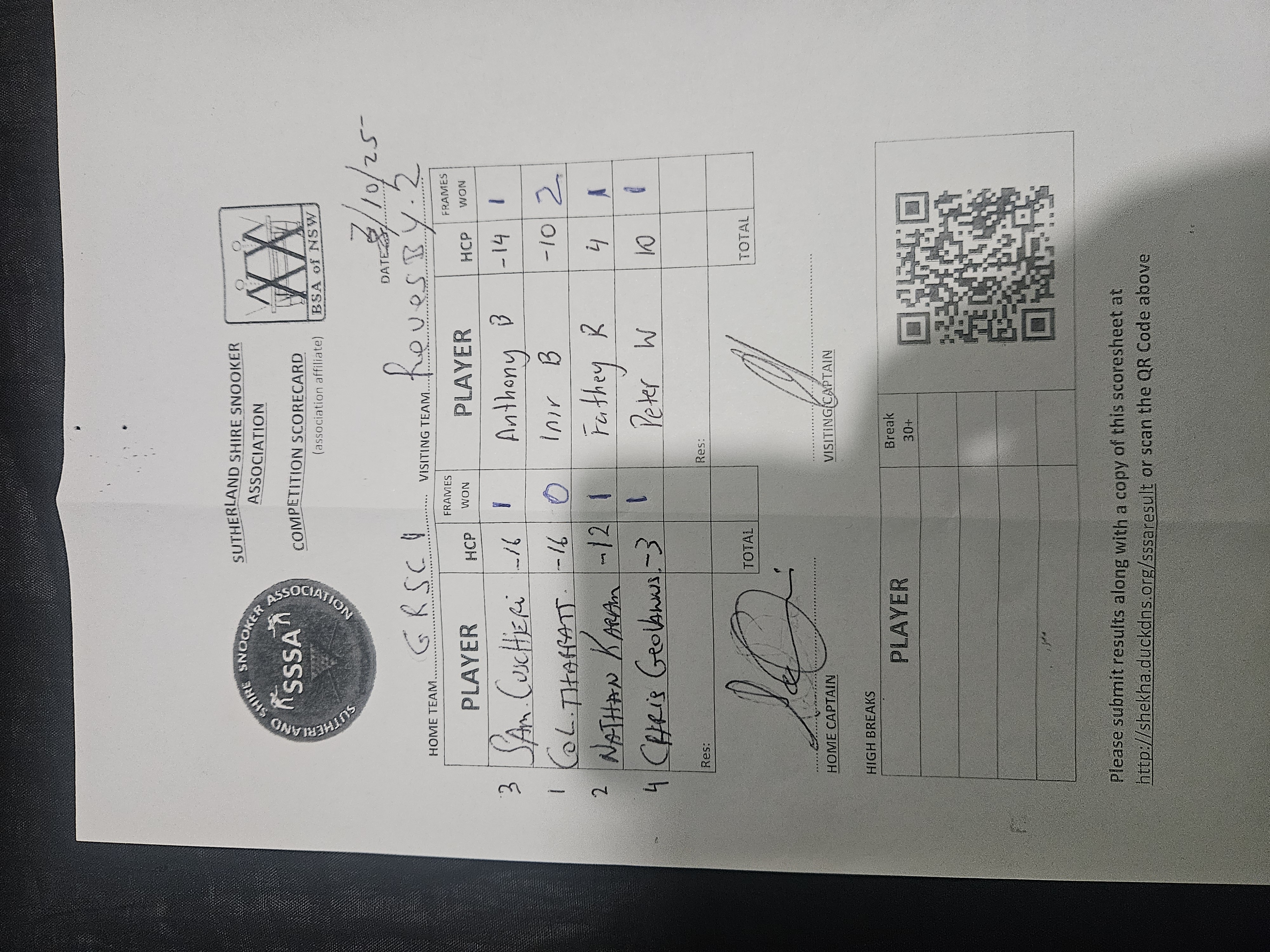 | Chris Giovannis (-3) | Peter Waller (10) | 2025-10-07 21:19:31 | Revesby Workers #2 |